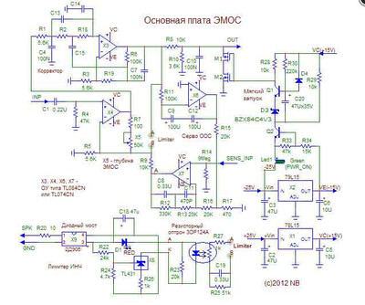 https://forum.vegalab.ru/showthread.php?t=68662 https://forum.vegalab.ru/showthread.php?t=12485 Сделал его плату ЭМОС и два датчика на пьезодисках: (схема, фото). Долго не мог понять почему звук с ЭМОС ухудшается вместо улучшения. Дело оказалось в том, что плоская панель всегда возбуждается еще и на собственных частотах колебаний, но при хорошем демпфировании их практически не слышно. А пьезодатчик воспринимает эти колебания через усилитель подает их уже на звуковую катушку и все становится отчетливо слышно. Вывод: пьезодатчик- акселерометр для панели совсем не годится. Тогда обратил внимание на посты Андрея Орлова в тех же темах Nota Bene: он решил делать ЭАОС (электро акустическая обратная связь), причем на сабе с открытым исполнением "щит" хотя, обычно, ЭМОС всегда делали в ЗЯ (закрытом ящике). Давно, где-то читал, что на одной из аудио- выставок в Москве Сырицо показывал звуковой комплекс с микрофоном в качестве датчика акустической обратной связи, нашел его статью: https://www.radioradar.net/radiofa....rs.html Сырицо устанавливал микрофонный капсюль перед НЧ диффузором на расстоянии 12мм, чтобы не было касания при максимально ходе. Но, это приводит к запаздыванию сигнала ЭАОС и снижению устойчивости в работе. Орлов нашел где-то в западных источниках две хорошие идеи использования микрофонов в качестве датчика ОС, первая: они установили микрофон не перед, а непосредственно на диффузор динамика "летающий микрофон", тем самым существенно снизив время запаздывания сигнала ОС. Вторая идея заключается в устранении работы "летающего микрофона" акселерометром за счет инерционных колебаний его мембраны. Для этого микрофон крепится на диффузор так, чтобы его мембрана была перпендикулярна диффузору. Так микрофон реагирует только на акустическое давление, а не на сами колебания диффузора. Это именно то, что и необходимо для панельного сабвуфера. (Продолжение следует).